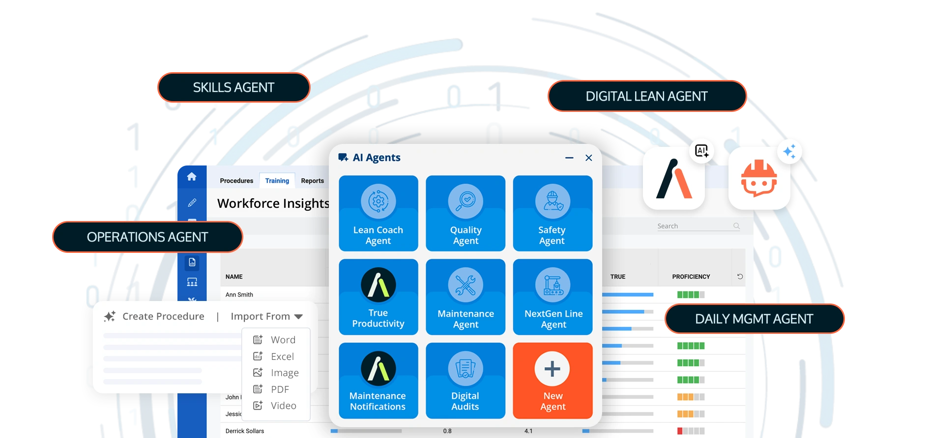 Diese Funktionen werden durch vorausschauende Erkenntnisse von Augmentir ermöglicht. True Productivity™ Ein Algorithmus analysiert Personal- und Betriebsdaten, um Qualifikationslücken, Ineffizienzen und Verbesserungspotenziale zu identifizieren. Zusammen bilden diese Elemente einen kontinuierlichen Informationskreislauf, der intelligentere Entscheidungen und eine fortlaufende operative Optimierung ermöglicht.
