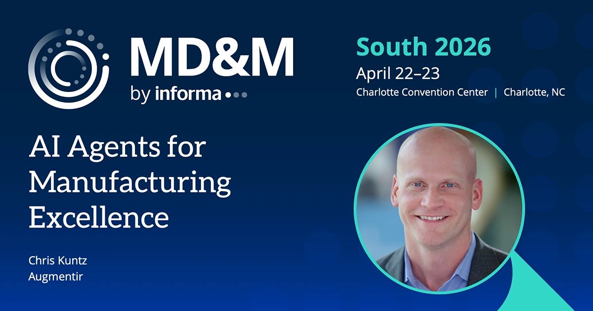 Augmentir’s Chris Kuntz, VP of Strategic Operations, will be speaking at MD&M South 2026 in the session:
